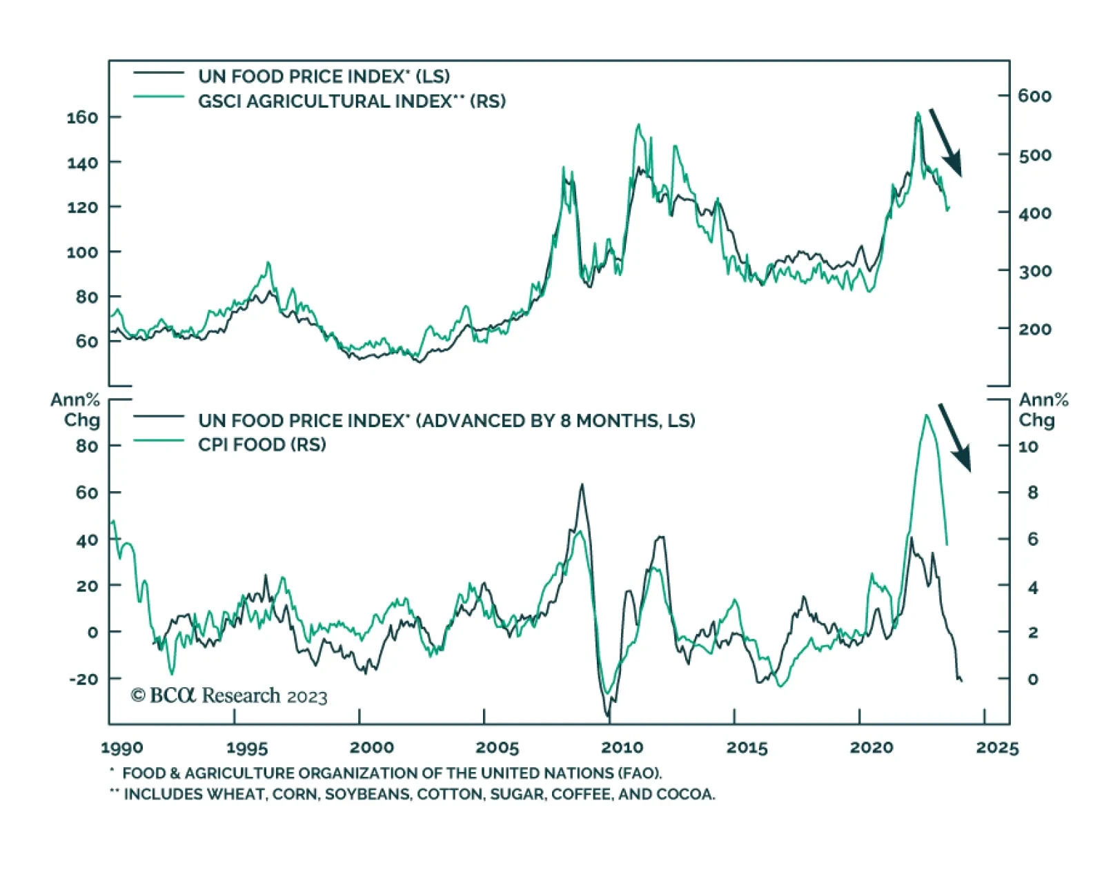 Agriculture commodity prices have been on a steady decline for over a year. Since peaking in mid-May 2022, the GSCI Agriculture index has dropped by 34% -- nearly half of which occurred in 2023. The weakness is generally broad-…