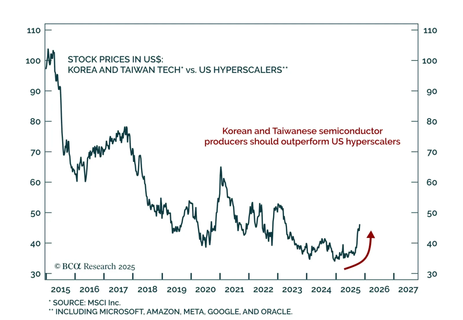 Our Emerging Markets strategists recommend a long Asian semiconductor stocks / short US hyperscalers trade over the next 6–12 months, with a positive return profile in both bullish and bearish AI scenarios. Korean and Taiwanese…