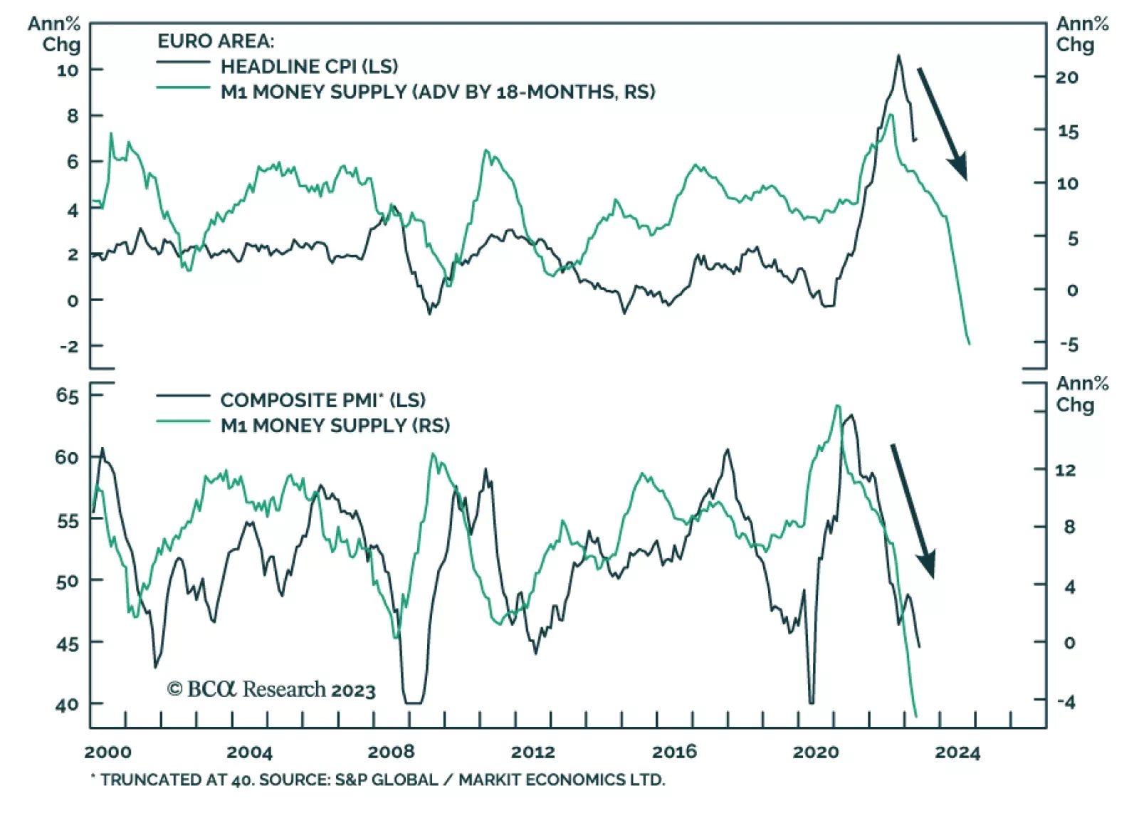 The latest Eurozone data releases show the impact of the ECB’s aggressive monetary tightening cycle. The contraction in M1 money supply – which includes currency in circulation and overnight deposits –…