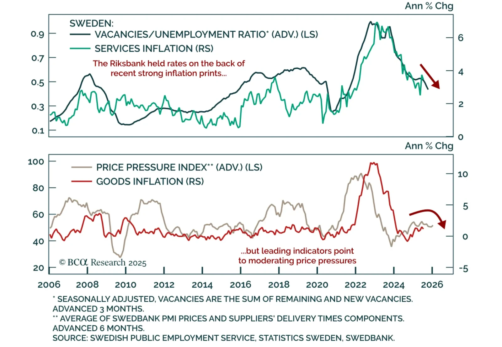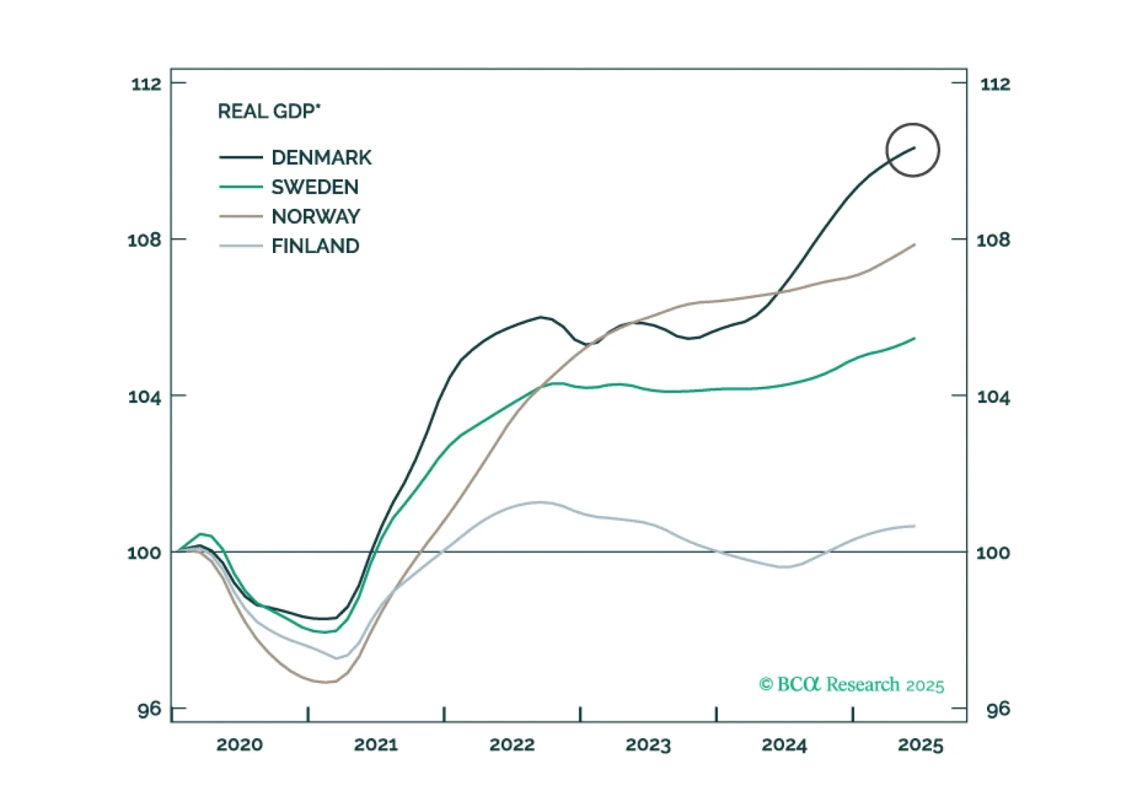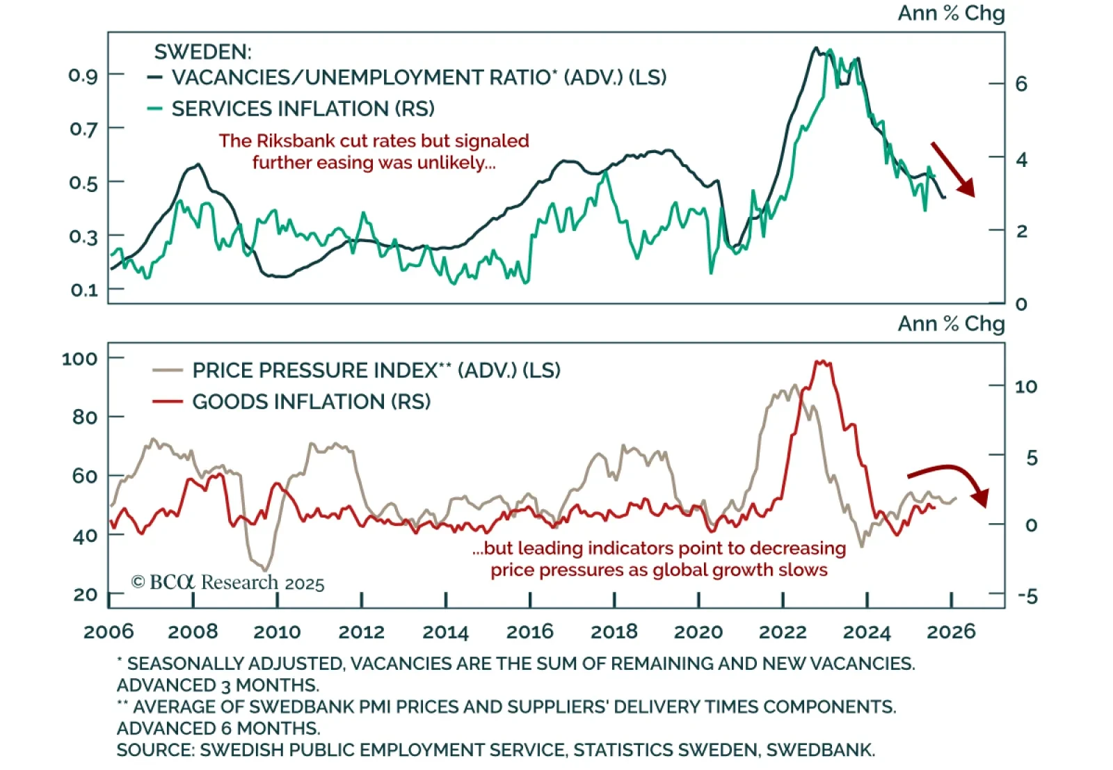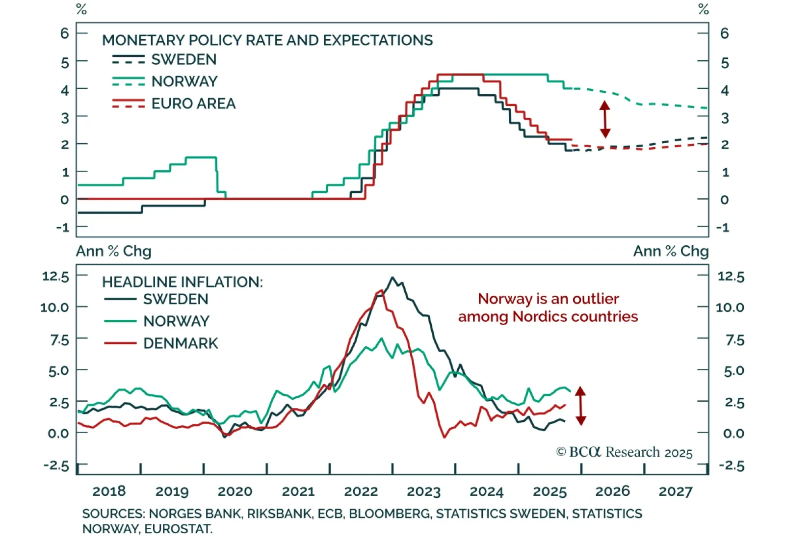 Our European strategists turn overweight Swedish equities and initiate a short NOK/SEK position as Nordic central banks pause but their economies diverge. Sweden’s recovery and stable inflation allow the Riksbank to join the “easing-…