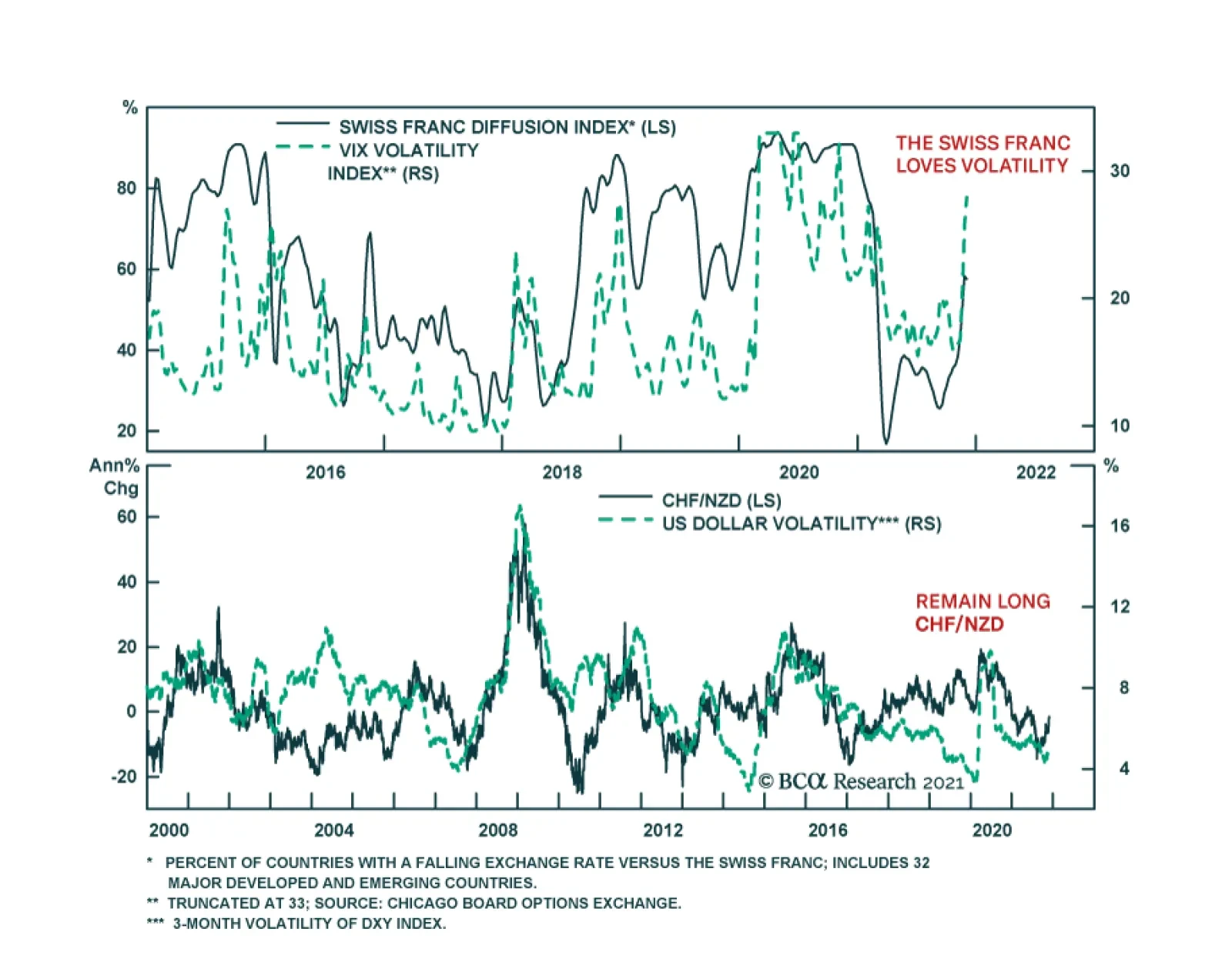 BCA Research’s Foreign Exchange Strategy service expects the Swiss franc to benefit in the very near term as volatility stays elevated. The CHF is as much driven by global dynamics as domestic actions by the SNB. With…