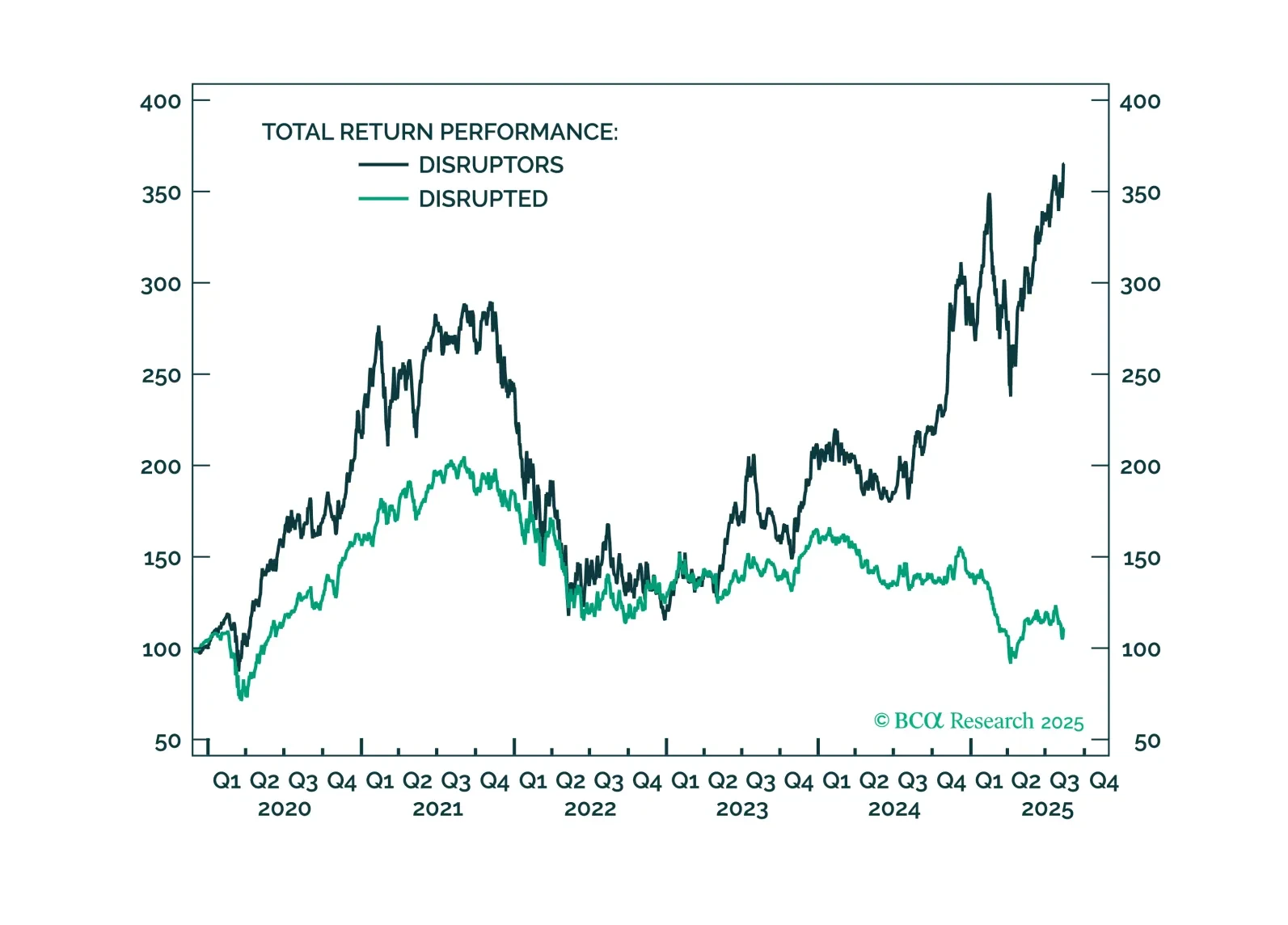 GenAI momentum is building. Many companies are already reaping benefits from the technology. GenAI is disrupting entire industries, such as education, image generation, and staffing. Investors should prefer our “disruptors” basket…