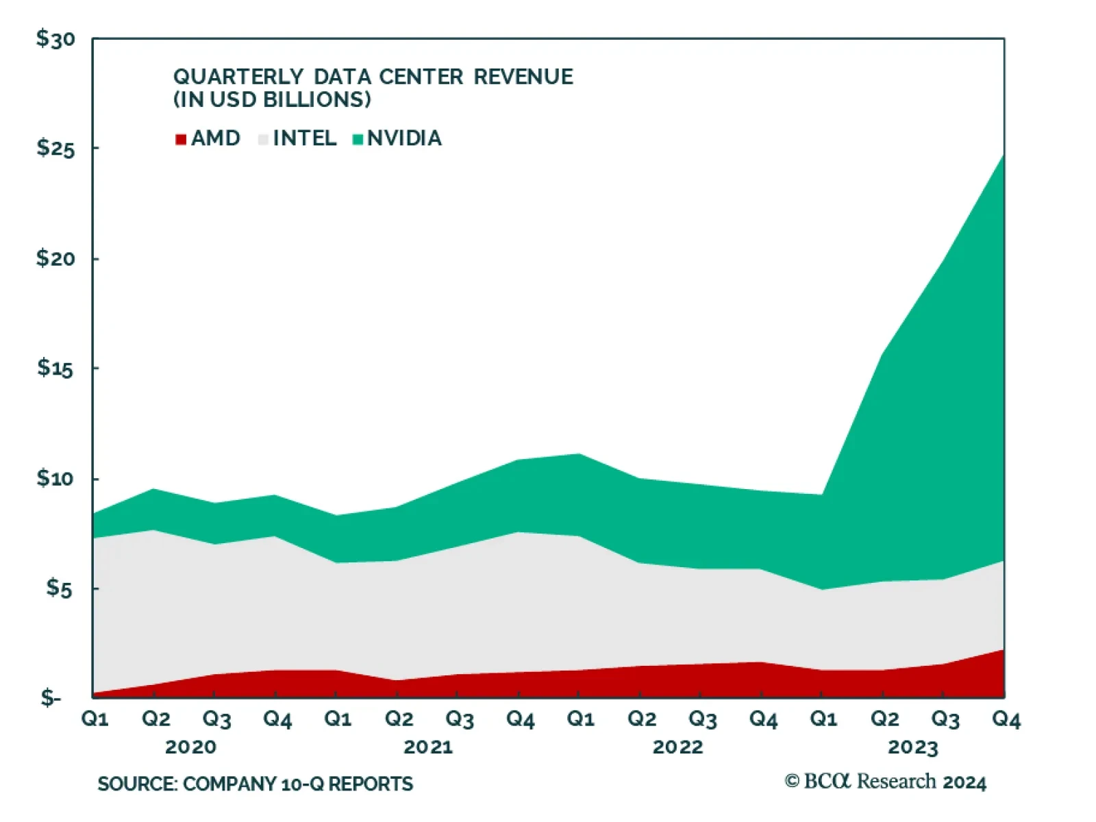 Nvidia has amassed staggering sales from AI. Last year its data center revenues exploded, going from just over $4 billion in 2023 Q1, to over $18 billion in 2023 Q4. That said, its competitors have not done as well. In the…