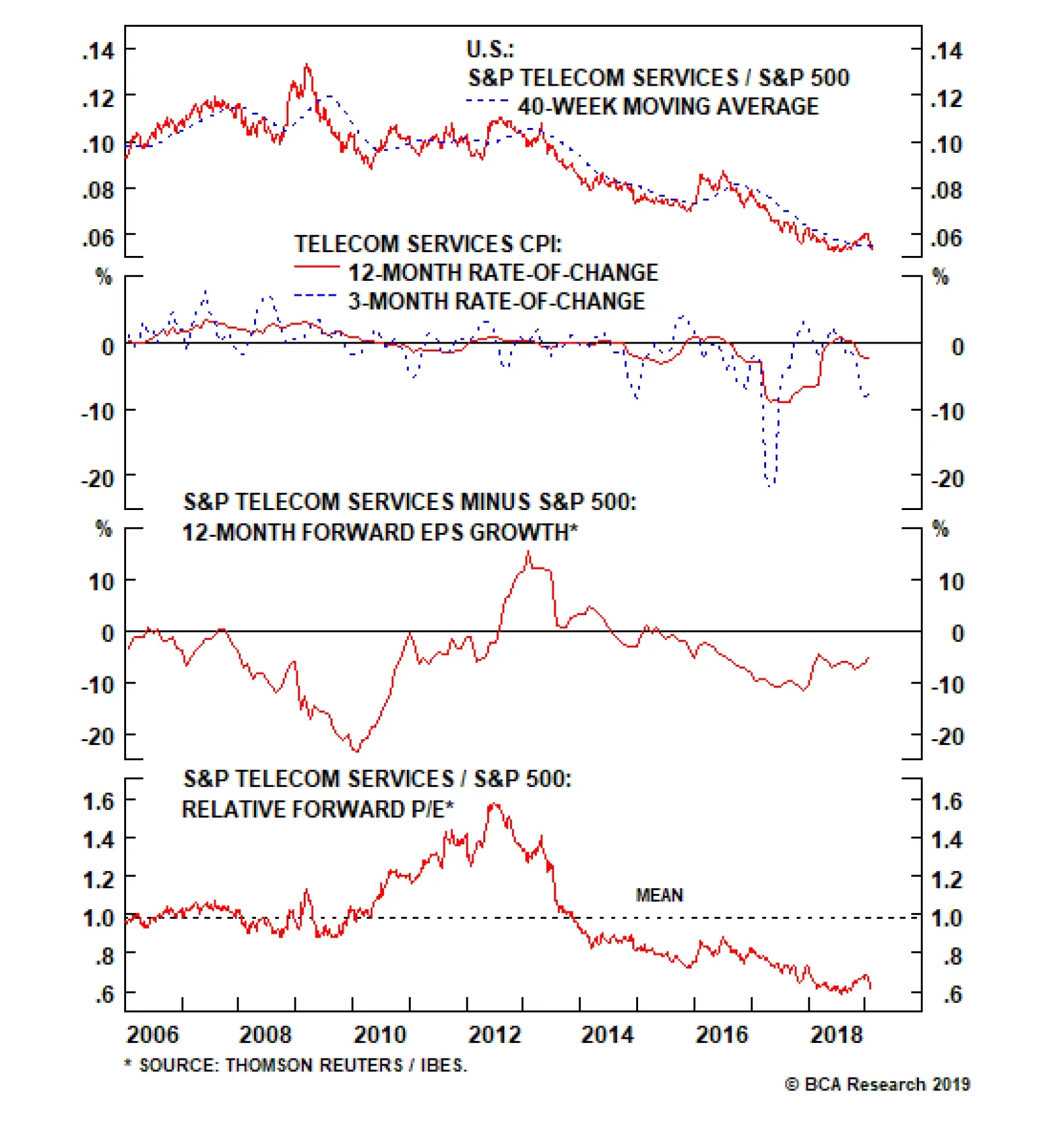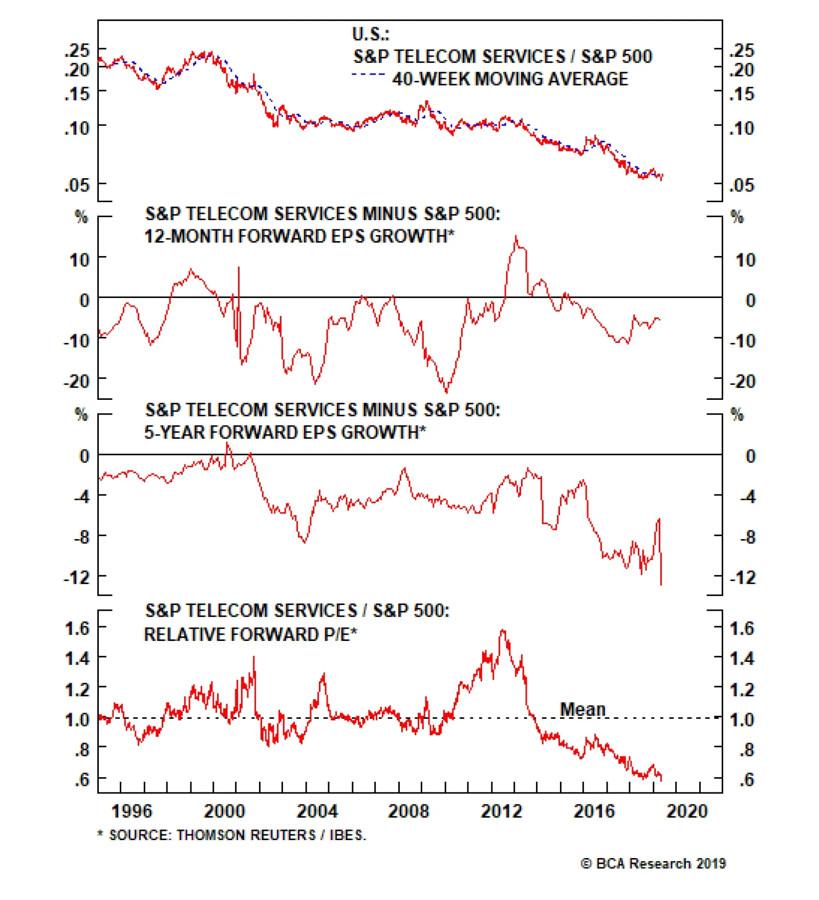Tough Times For Telco Top Lines Underweight The S&P telecom services index had recently been enjoying a brief respite from their mostly steady relative performance decline over the past decade, as a fall in yields boosted…