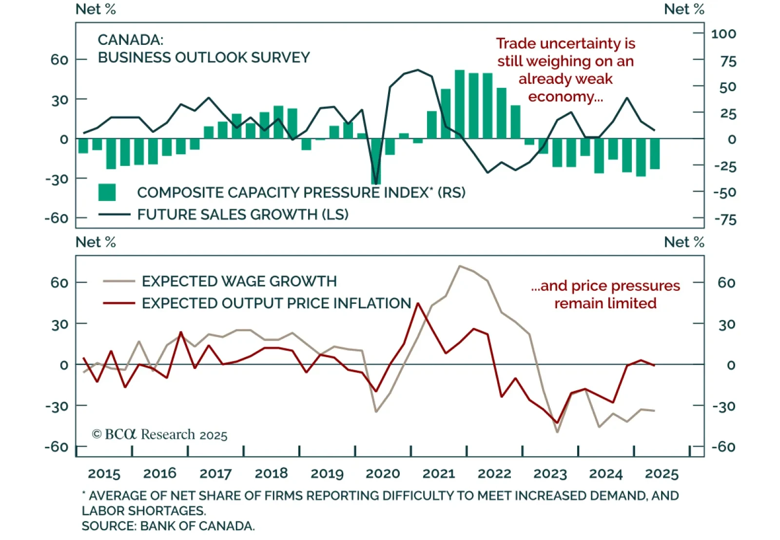 The Q2 Business Outlook Survey showed weaker sentiment and subdued hiring and investment intentions, reinforcing the case for deeper BoC rate cuts and our overweight in Canadian bonds. The BOS indicator ticked down to -2.4 from -2.1…