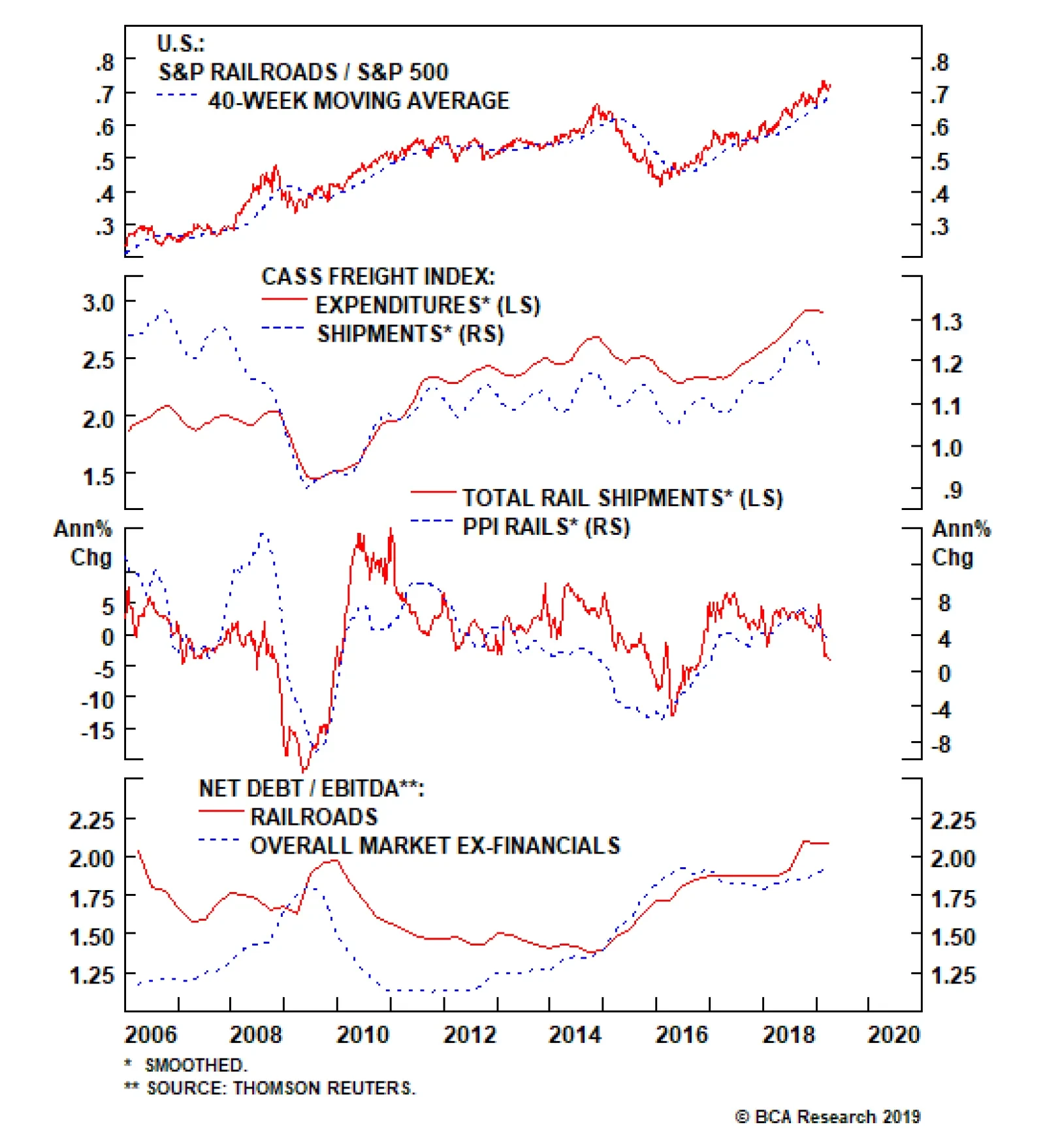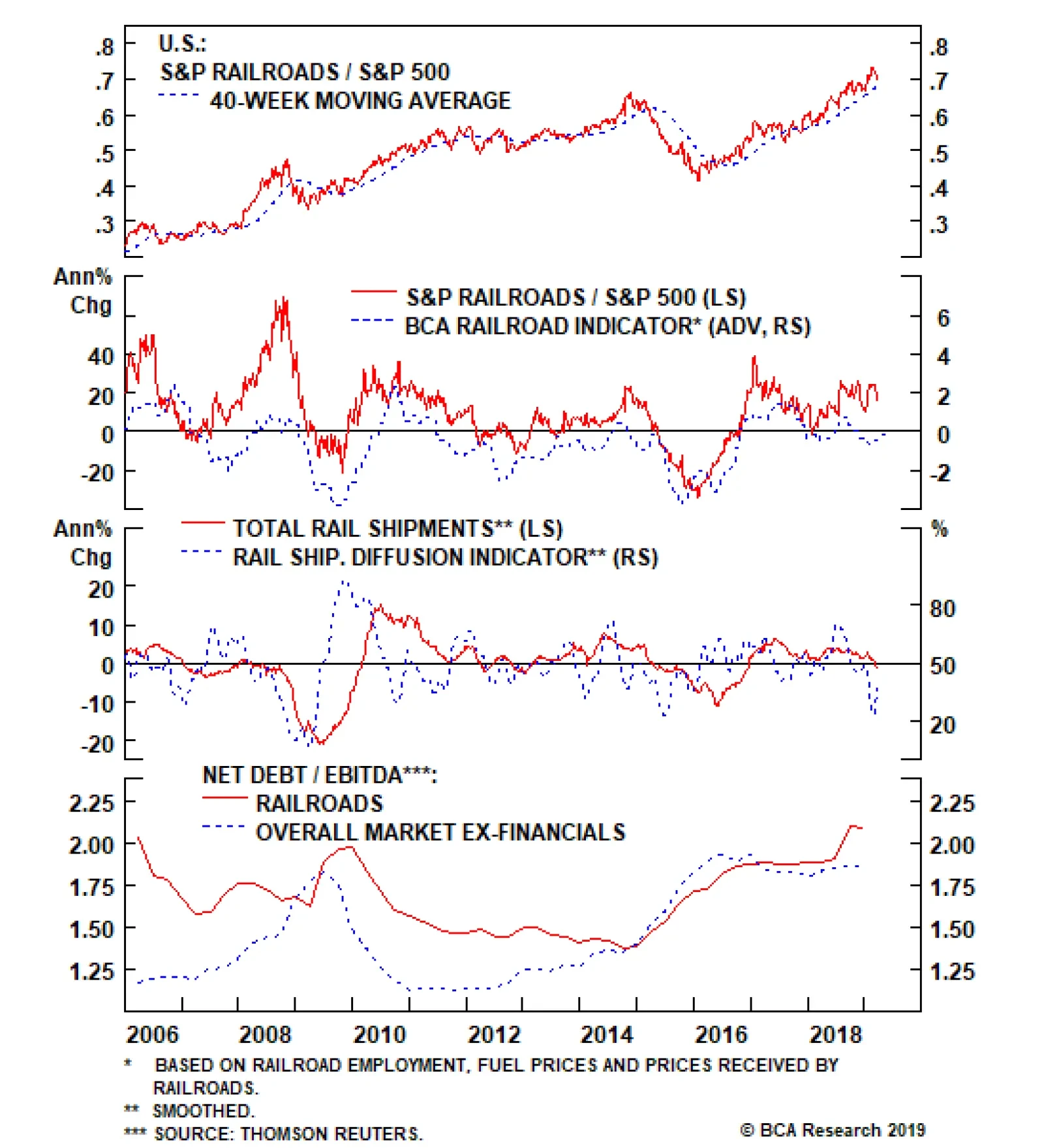 Underweight We downgraded the S&P railroads index to underweight last month based on falling rail traffic leading railroad pricing power down from its recent highs. Last week’s release of traffic data showed further…
