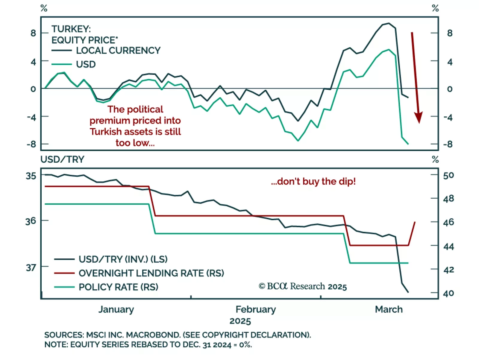 After a period of relative stability and progress towards policy orthodoxy, politics are again haunting Turkish assets. President Erdogan jailed Istanbul mayor Ekrem Imamoglu, a political rival from the opposition party gaining…