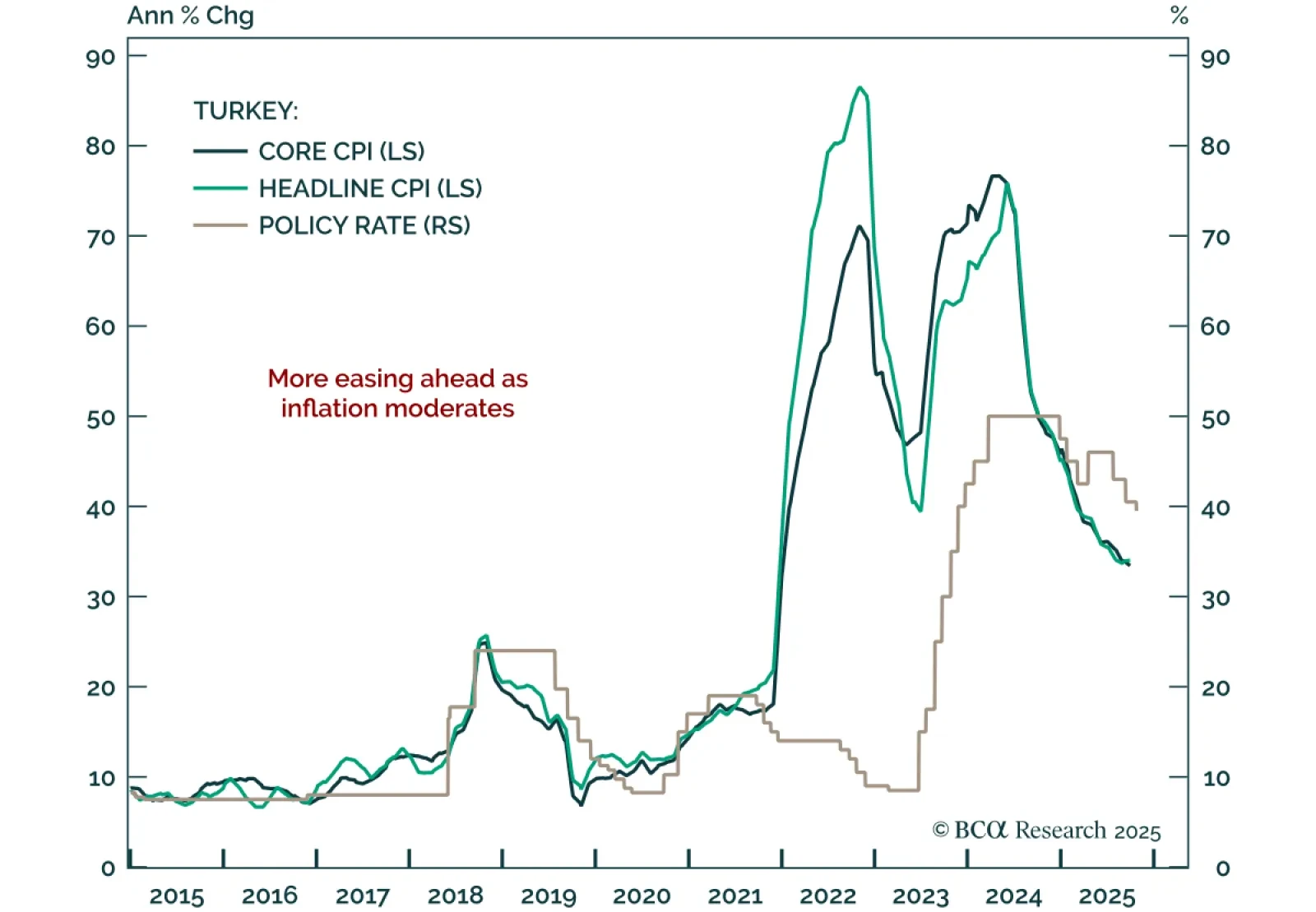 Stay long Turkish 2-year bonds and overweight Turkey in EM domestic credit as slowing inflation supports further easing. The Turkish central bank cut its policy rate by 150 bps to 38% amid slowing inflation. Our Emerging Markets…