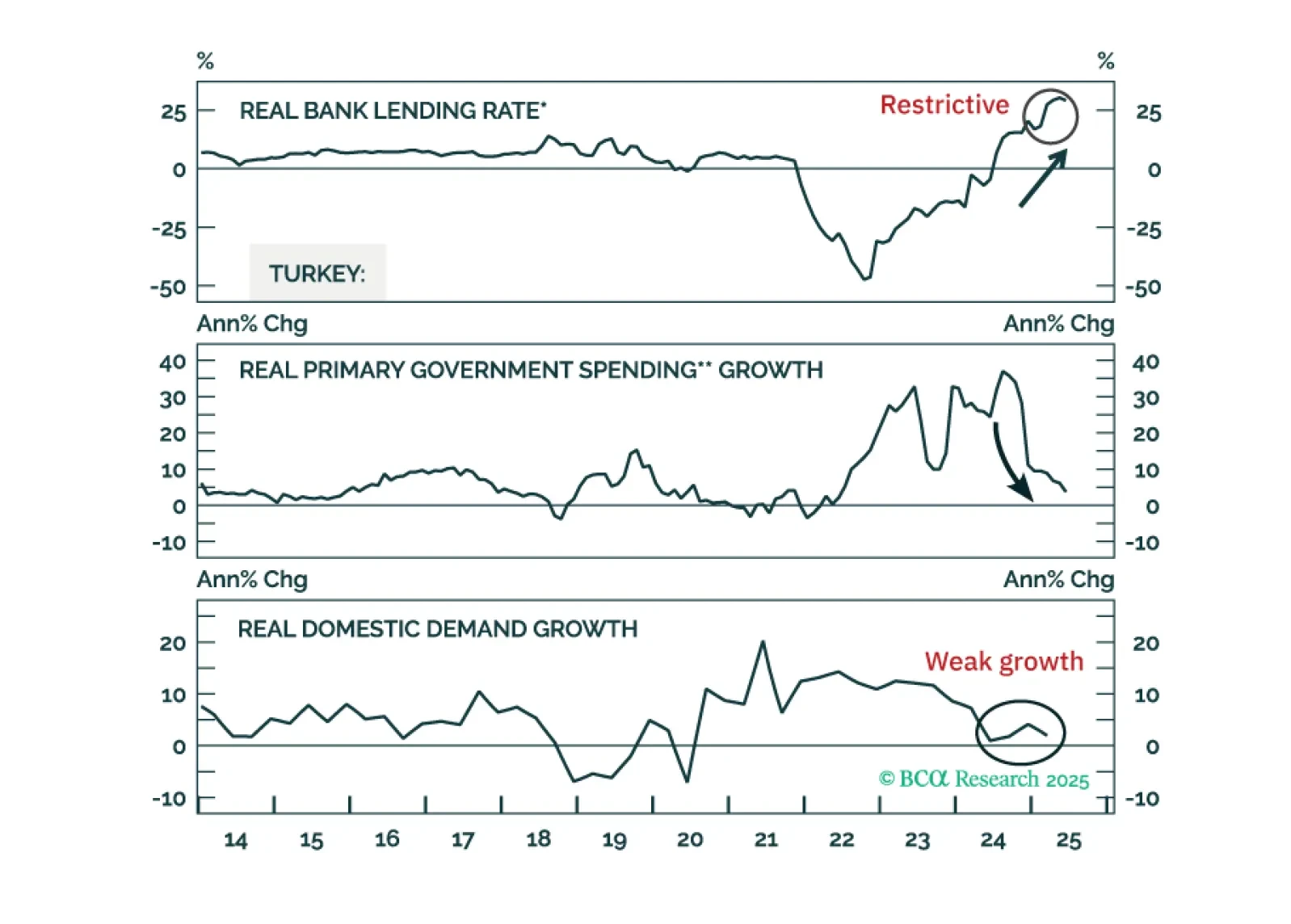 Our Emerging Markets strategists upgraded Turkey across assets, citing falling inflation, tight policy, and limited external imbalances. The Central Bank of Turkey cut its benchmark 1-week repo rate by 300 bps to 43%, citing…