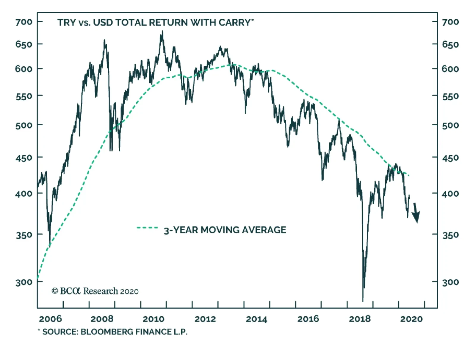 BCA Research's Emerging Markets Strategy service recommends that investors short the Turkish lira versus the US dollar and equity investors underweight Turkish equities and credit relative to their respective benchmarks.…