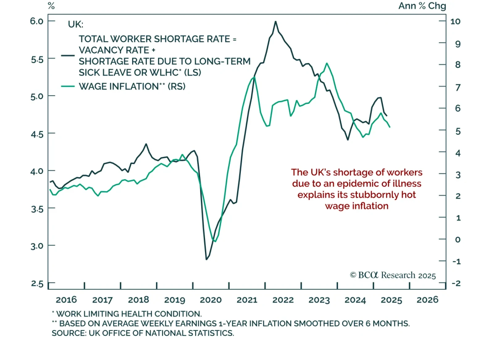 Our Counterpoint strategists recommend a structural overweight in GBP/USD and UK gilts relative to US Treasuries, and a tactical short in China’s CSI 300. Our colleagues argue a sharp rise in long-term sickness and disability has…