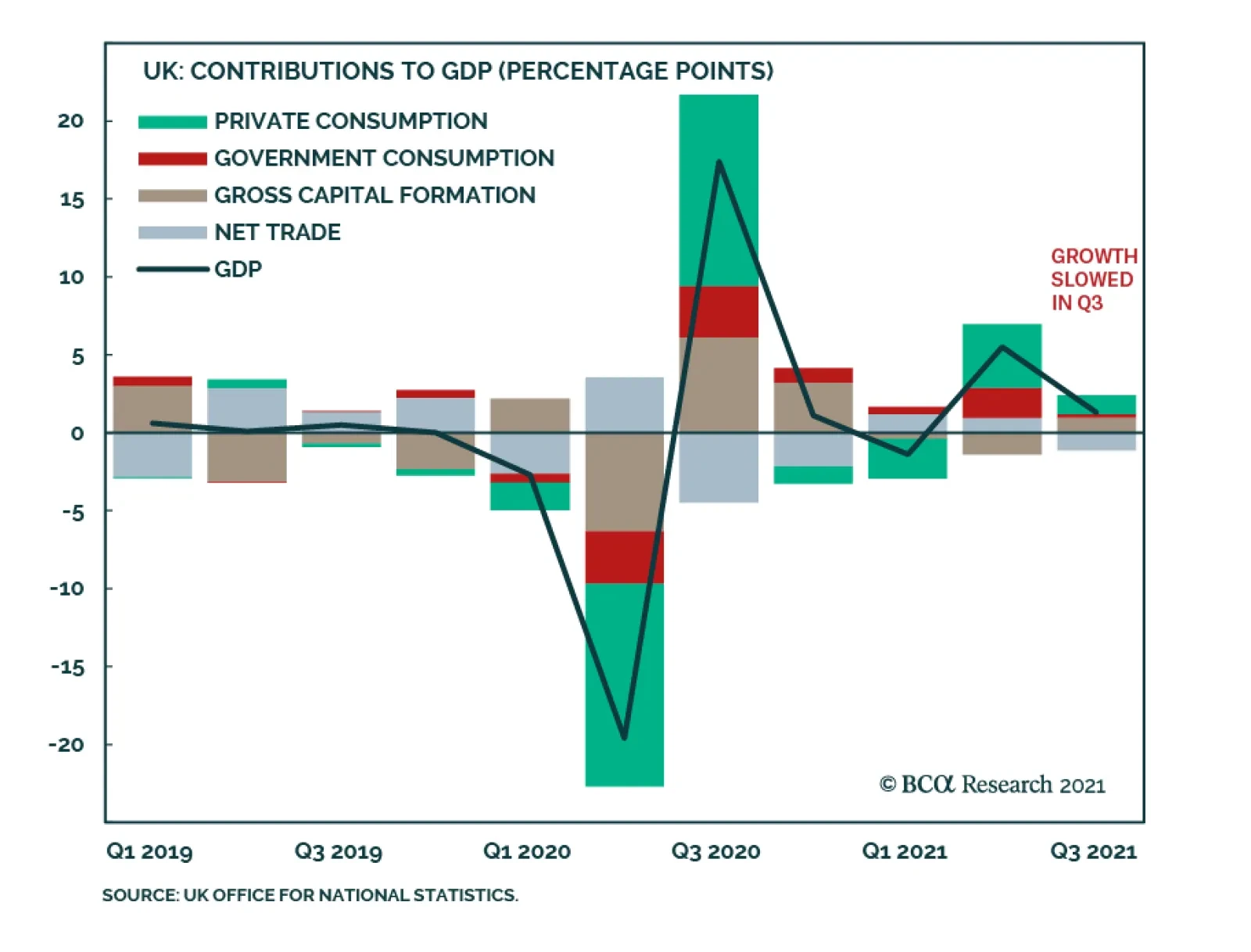 The UK economy decelerated in Q3 with the GDP print falling below expectations. Economic growth slowed from 5.5% to 1.3% q/q versus an anticipated 1.5% rate. Similarly, year-over-year growth moderated to 6.6% from 23.6%. However…