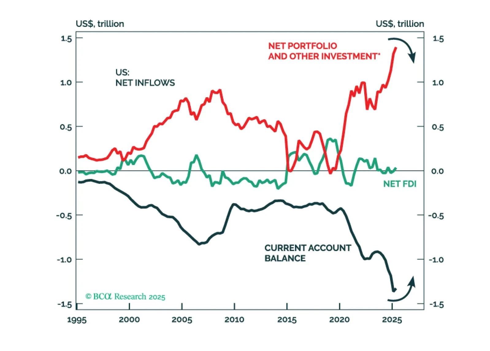 The belief that net portfolio outflows out of the US will fuel EM assets is a common but misguided narrative. If the US starts experiencing net capital outflows, it would need to run a current account surplus. A shift in the US…