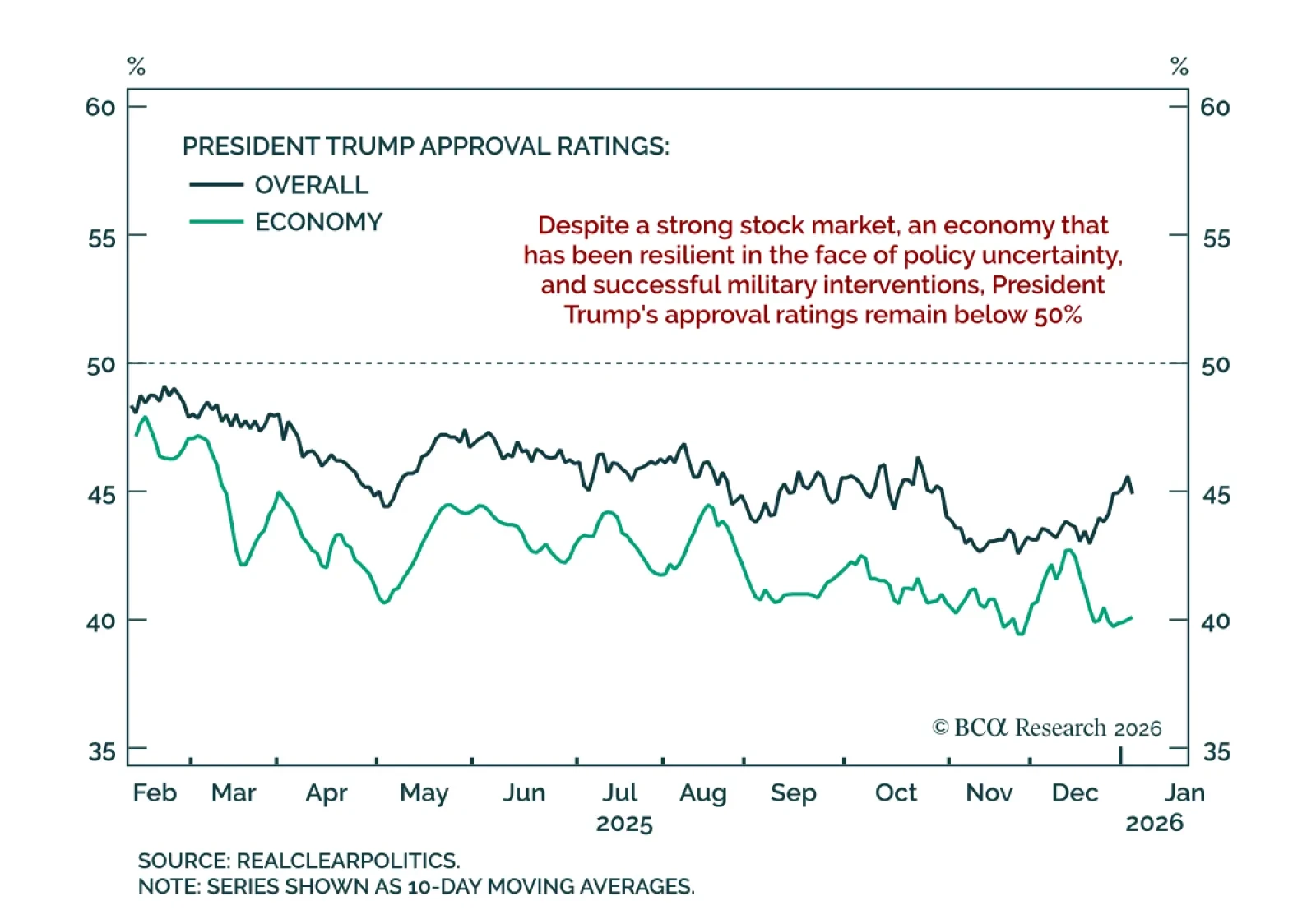 Maintain a moderately defensive stance as a bold but constrained Trump keeps policy risk elevated. President Trump’s second mandate has been quite different from his first. Trump remains a disruptive and unorthodox actor deliberately…