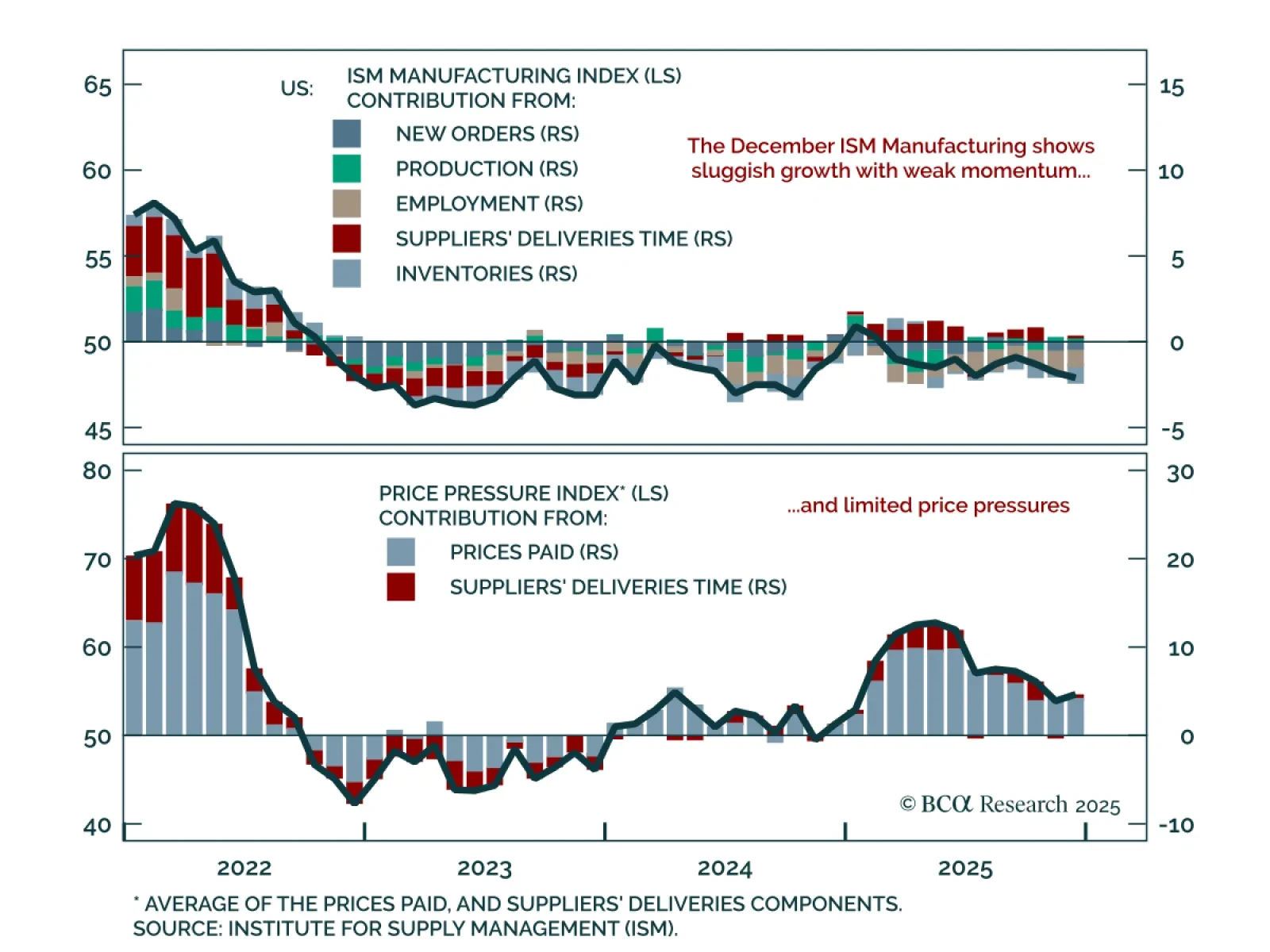 Stay overweight duration and favor curve steepeners as sluggish growth will allow the Fed to cut more than priced. The December ISM Manufacturing index missed estimates, falling to 47.9 from 48.2 and marking a tenth consecutive month…