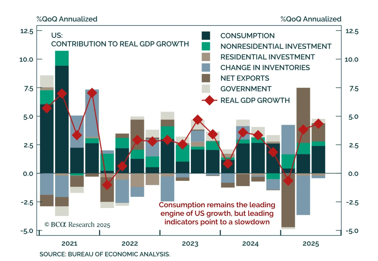 Remain neutral on equities; strong Q3 growth hinged on consumer resilience that leading indicators suggest will fade. US Q3 GDP beat estimates, accelerating to a 4.3% annualized pace from 3.8% in Q2, the fastest in two years.…